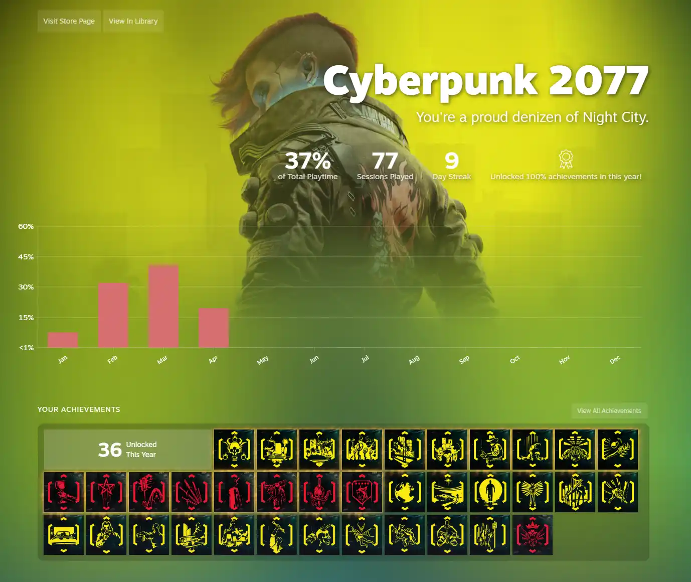 As I thought back in May, Cyberpunk 2077 remained my game of the year, and was the game I played the most. I did two runs of the game (Street Kid and Corpo background), and earned 100% of the achievements. For single player experiences I would also recommend God of War and Horizon Zero Dawn, and Lethal Company for game nights with friends.